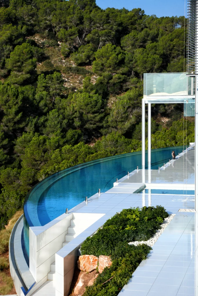 Piscina de lujo, Luxury pool con cristal curvo de 30 metros