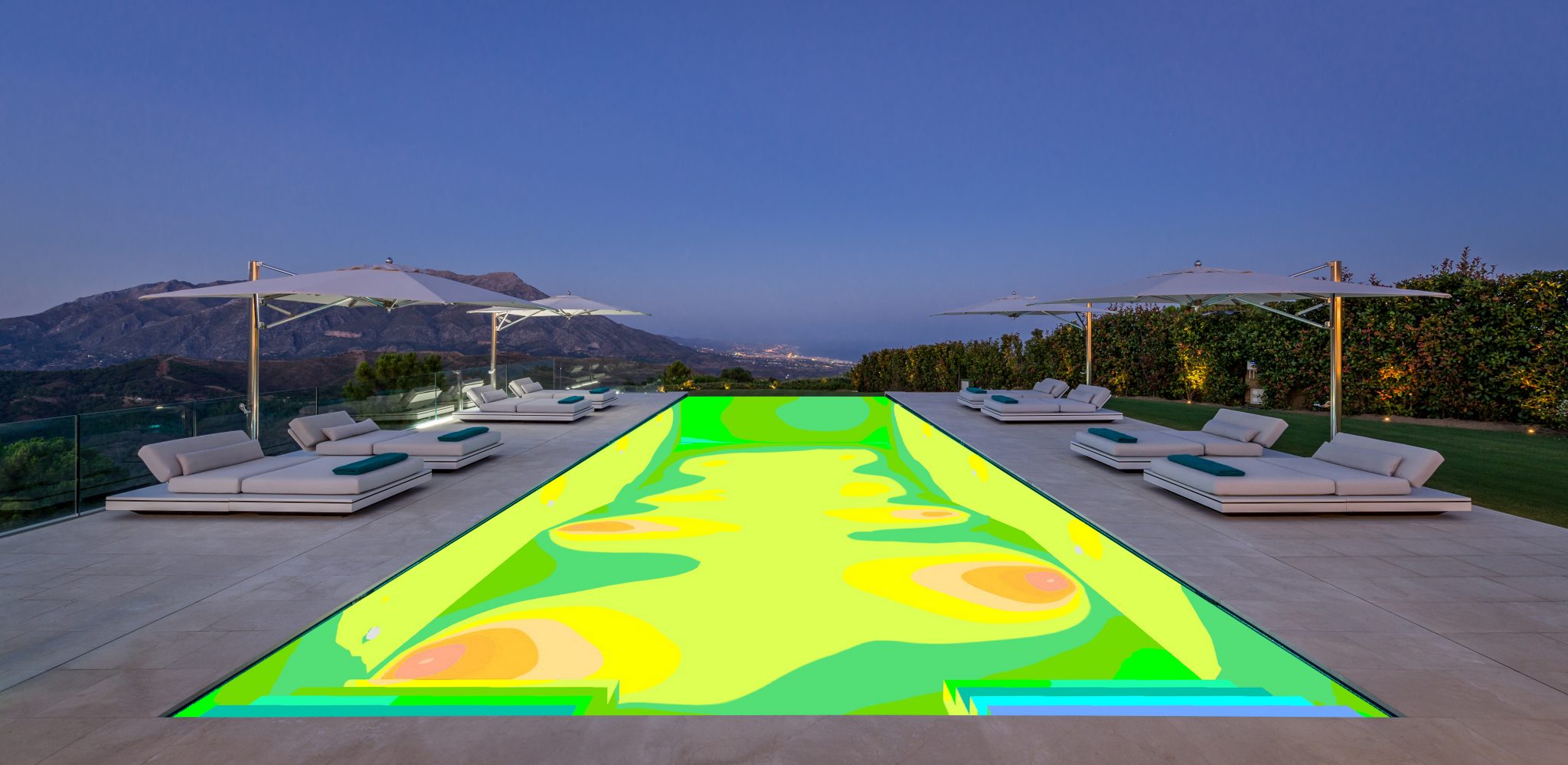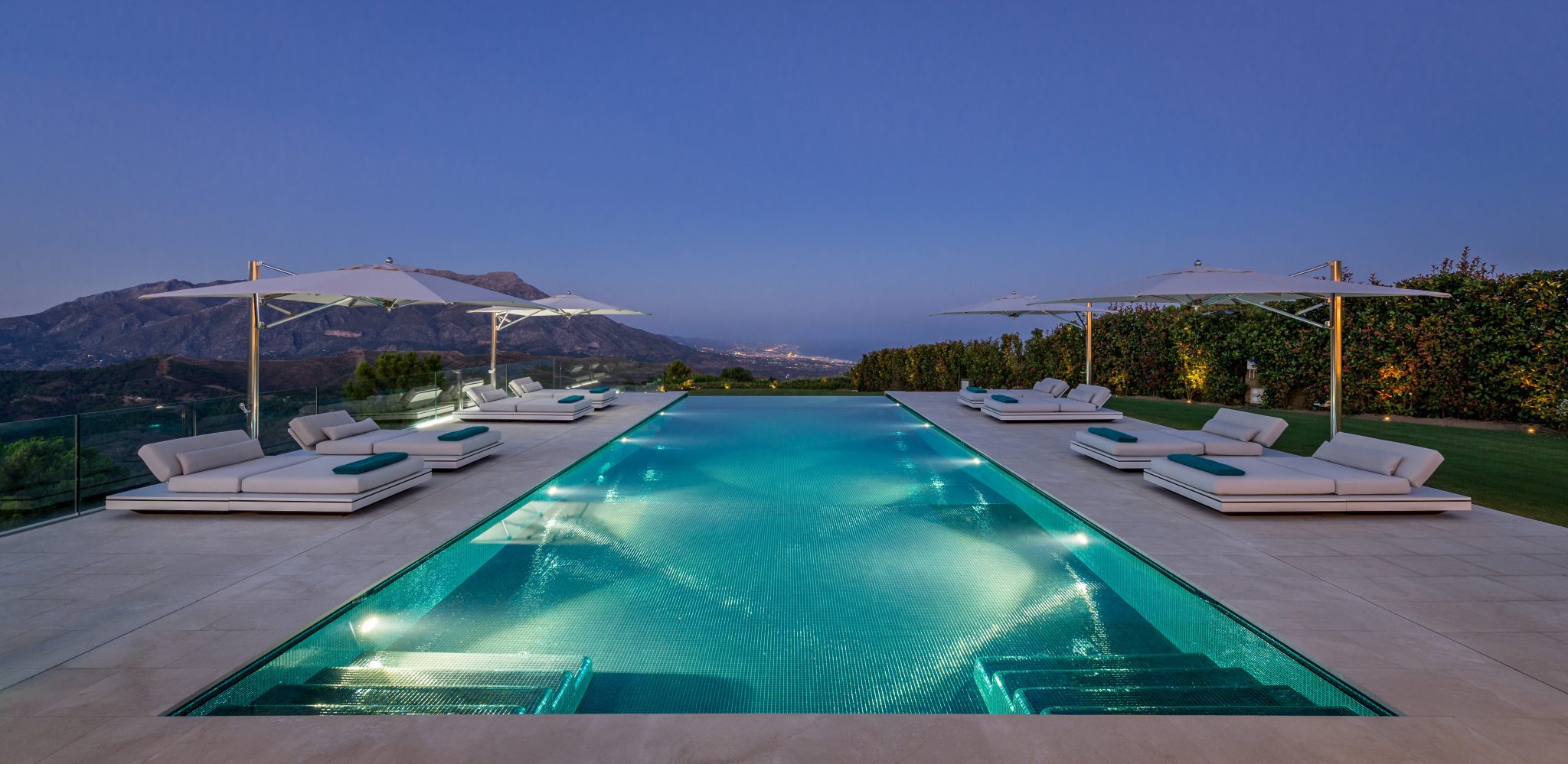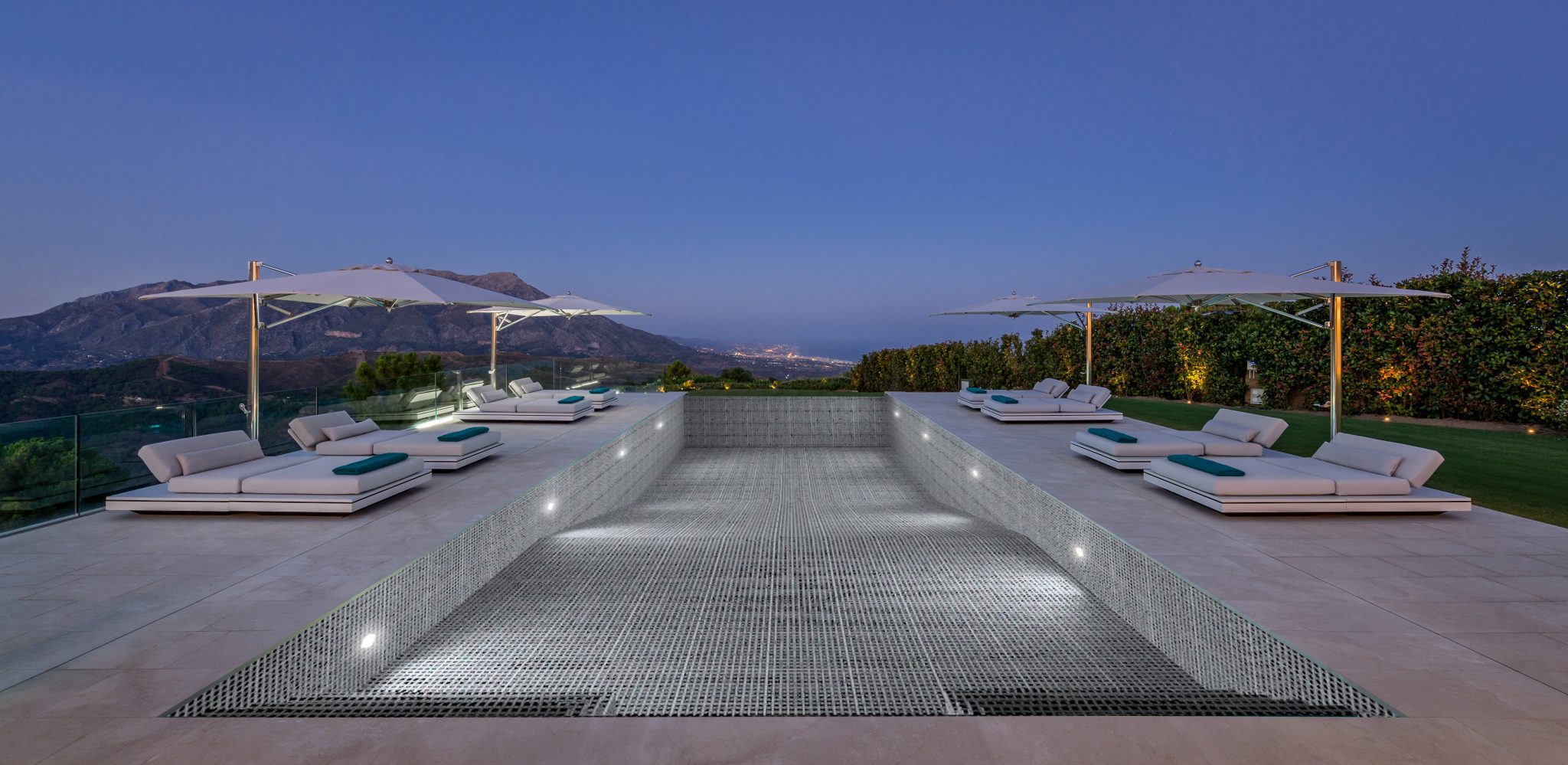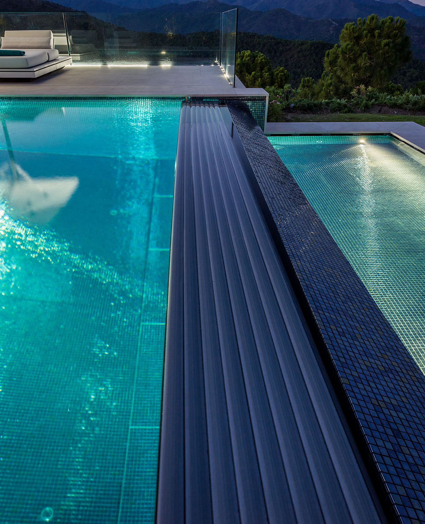 Proyecto nº 40 – Piscina exterior con rebosadero, pared de cristal y pileta de agua fría