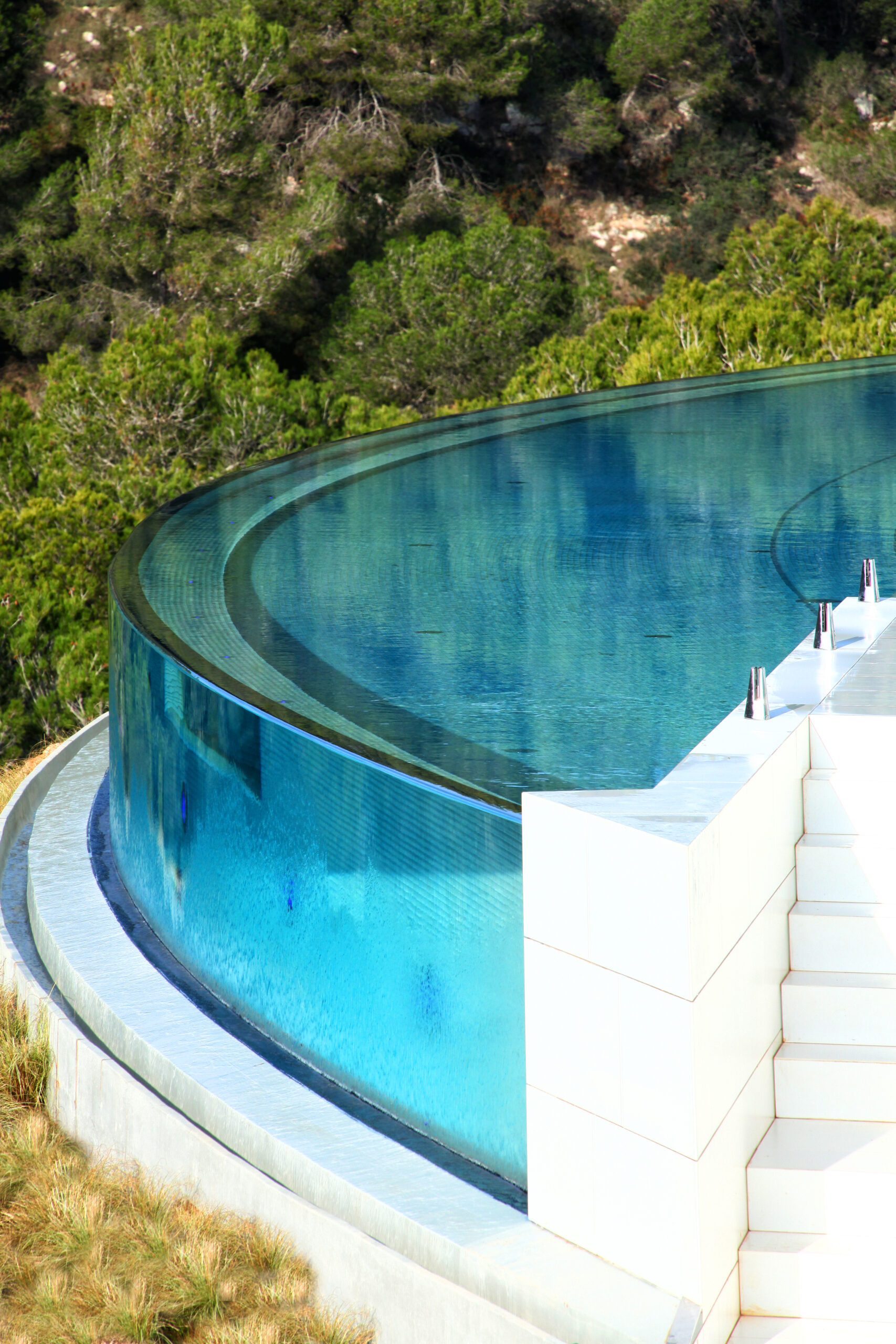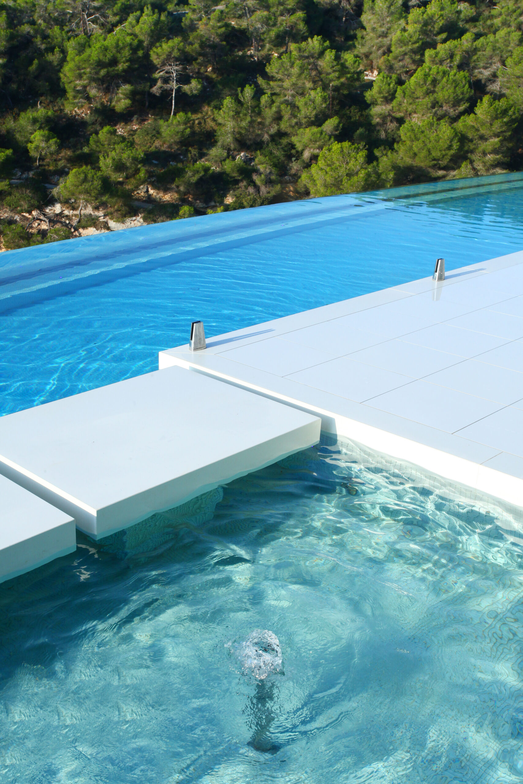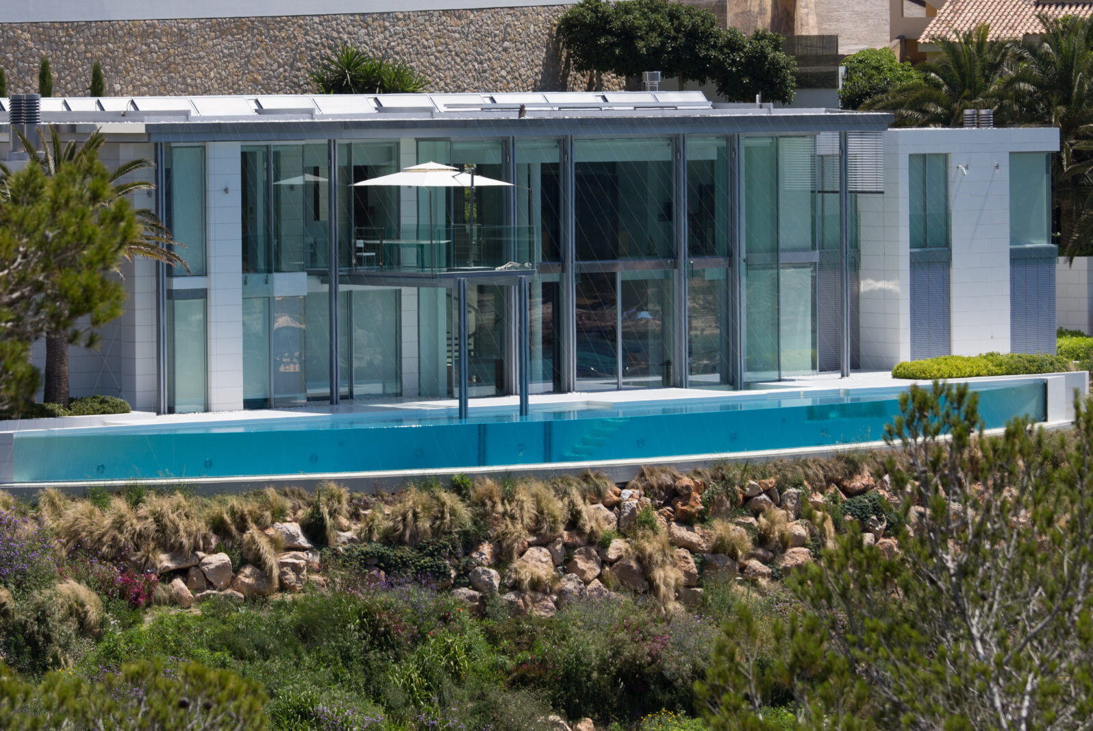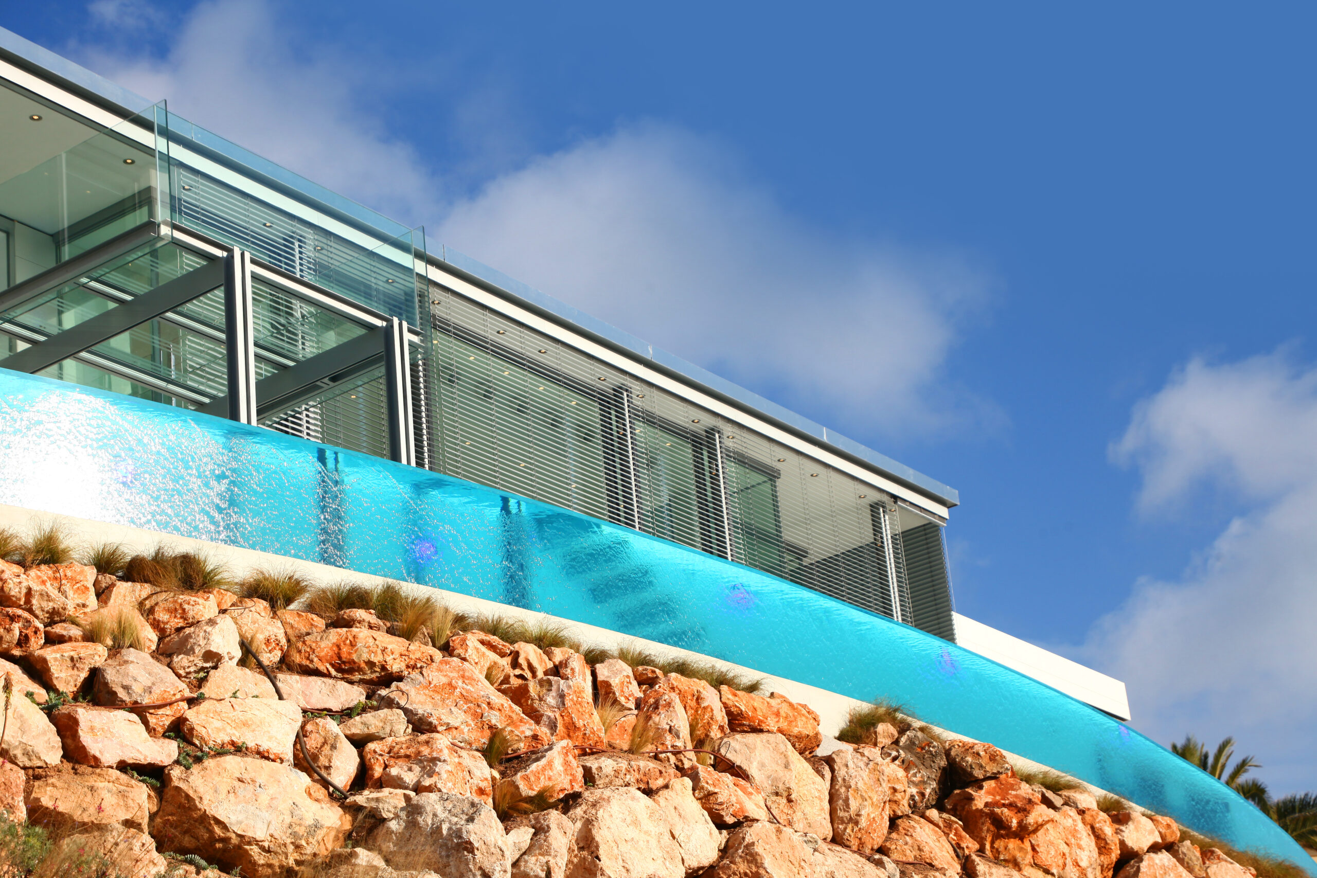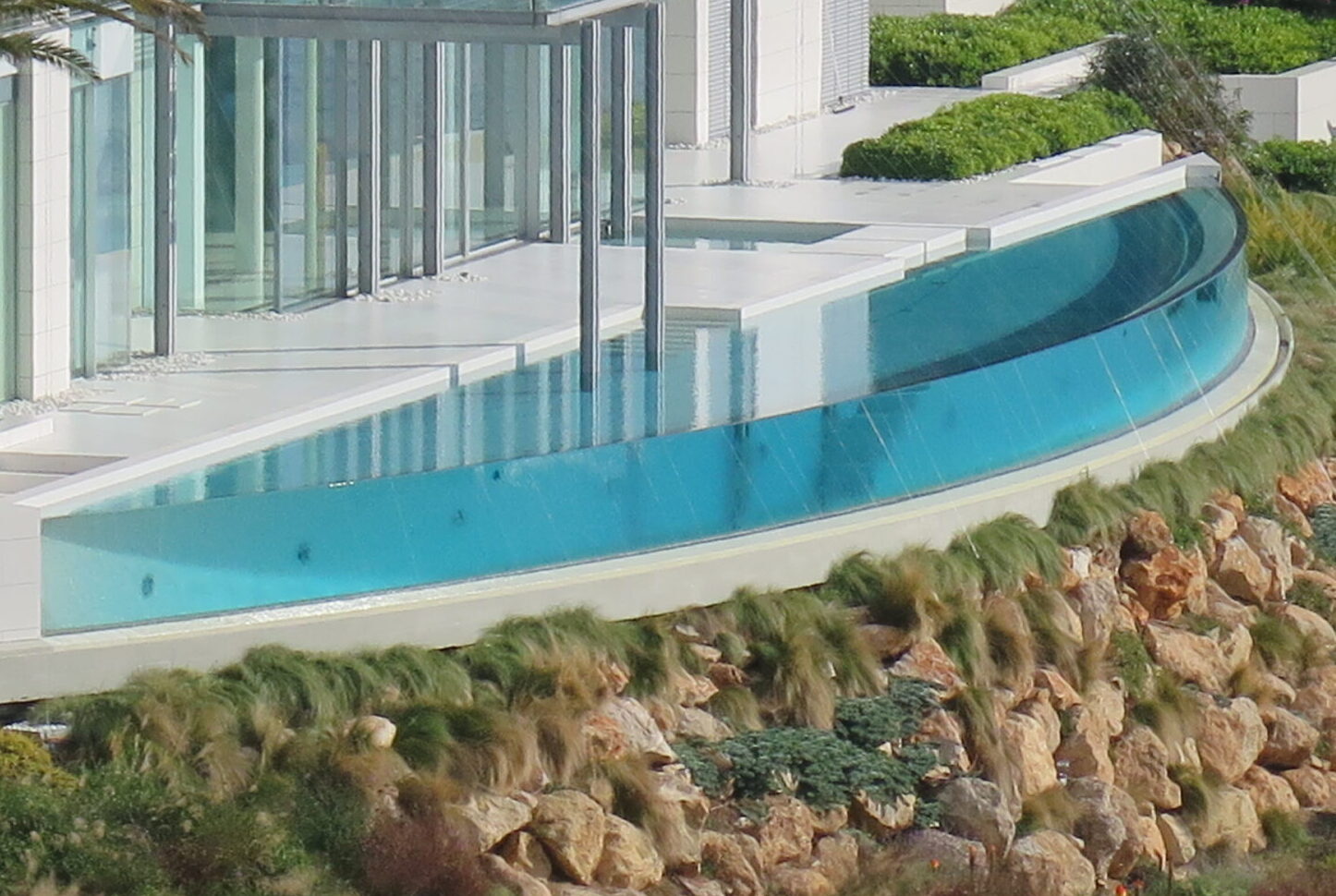 Proyecto nº 40 - Piscina exterior con rebosadero, pared de cristal y pileta de agua fría