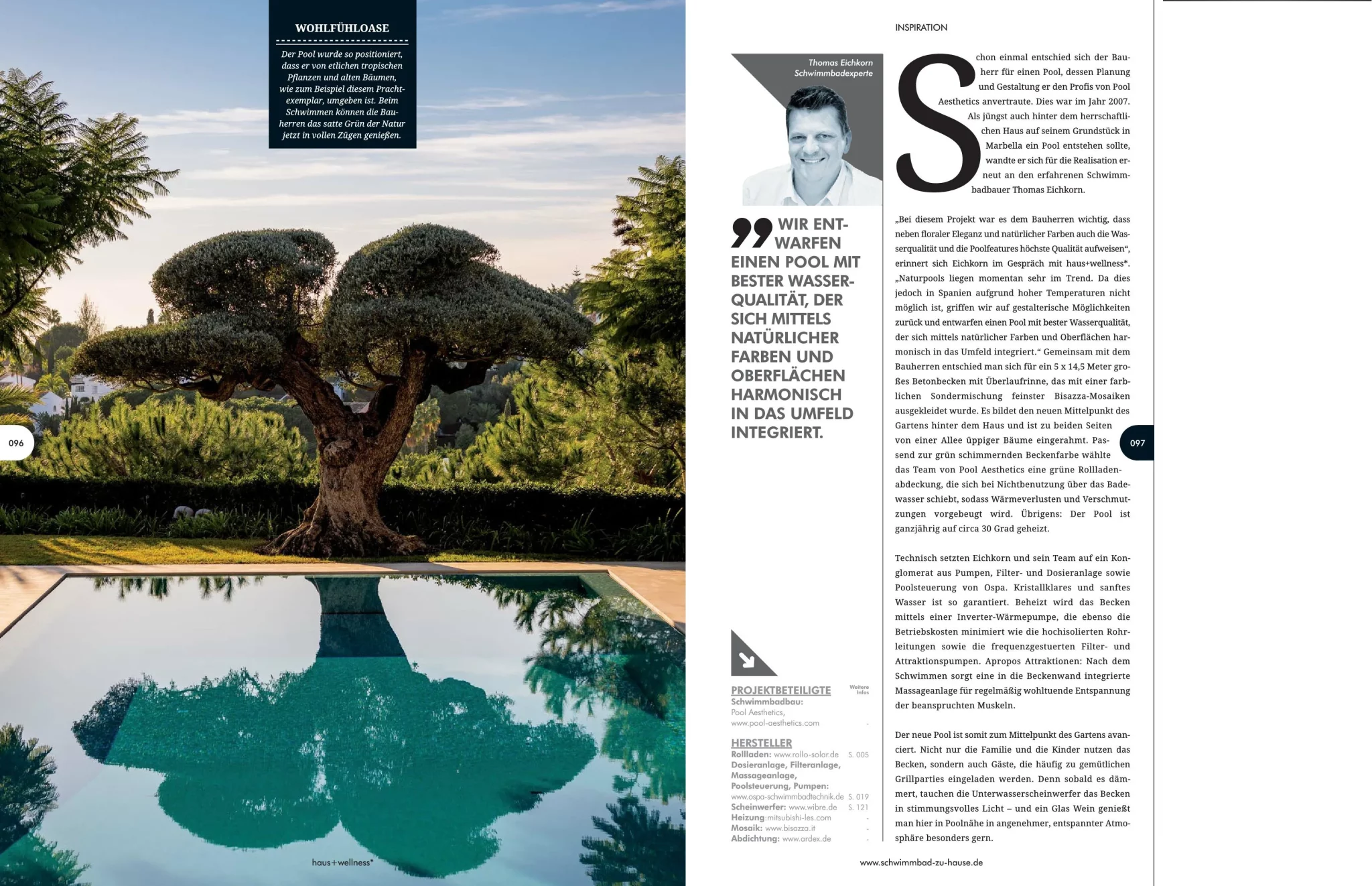 Así titulan el nuevo reportaje en la revista alemana de piscinas «Haus und Wellness»