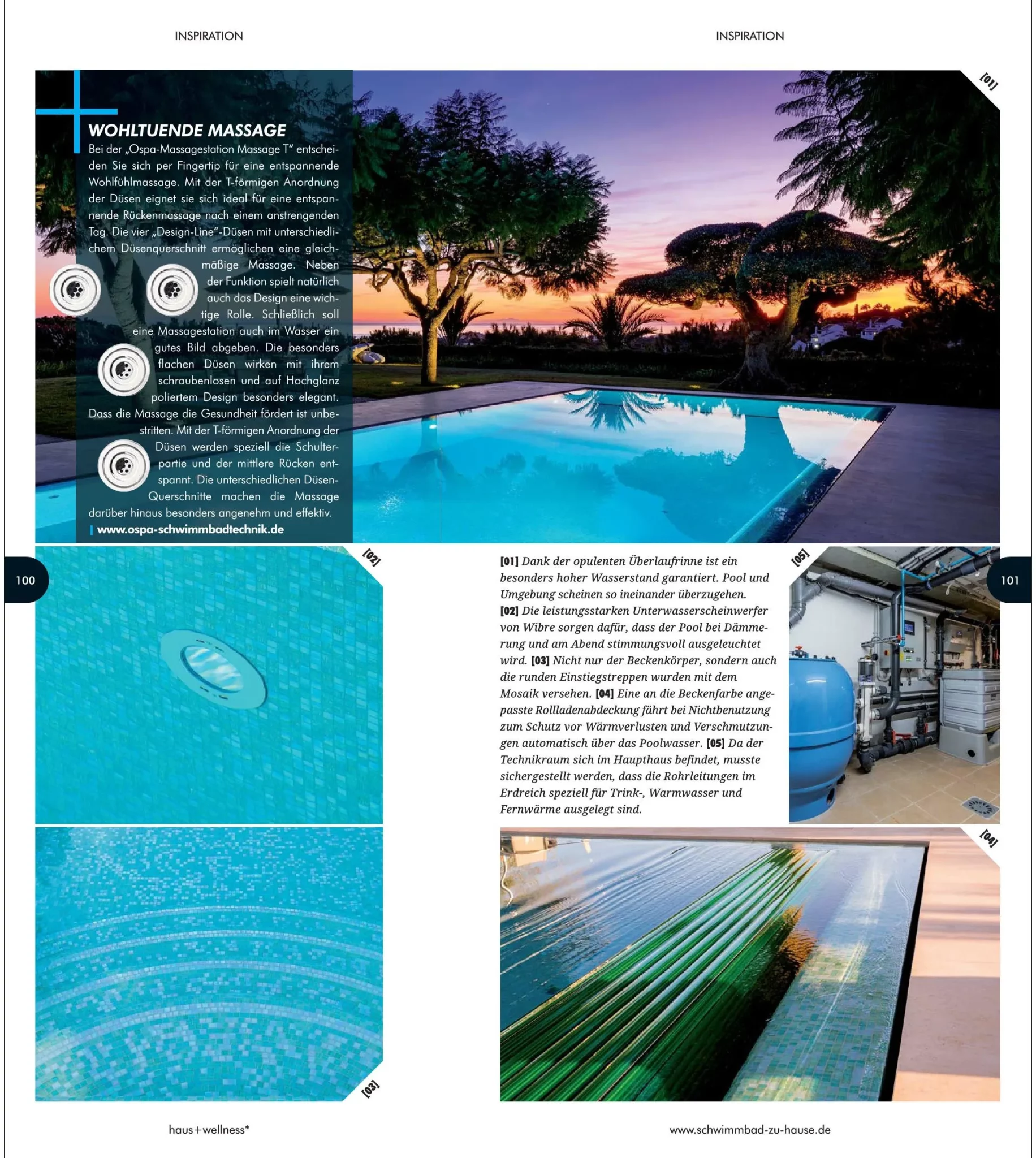 Una vez más, se publicó un reportaje de nuestro proyecto en la edición de Abril / Mayo de 2020 de la revista alemana de piscinas y bienestar «Haus und Wellness».